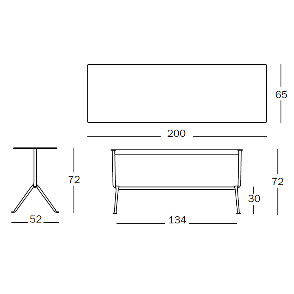 Mesa con sobre rectangular de madera nogal o mármol. Diseño Ronan & Erwan Bouroullec.