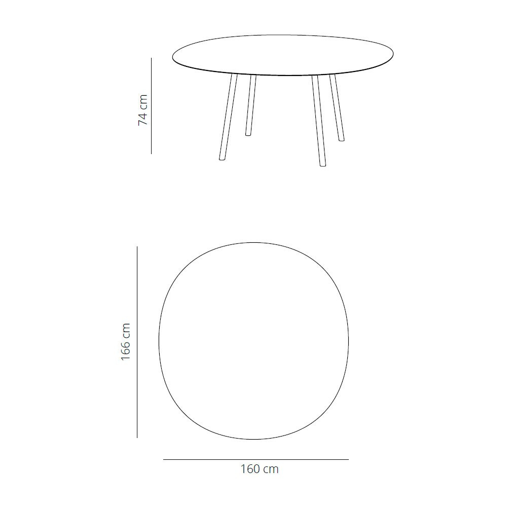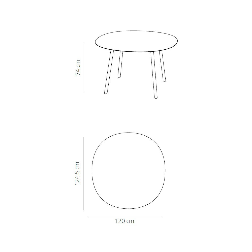 Mesa redonda con 4 patas de acero con sobre en madera o lacado. Diseño: Victor Carrasco.