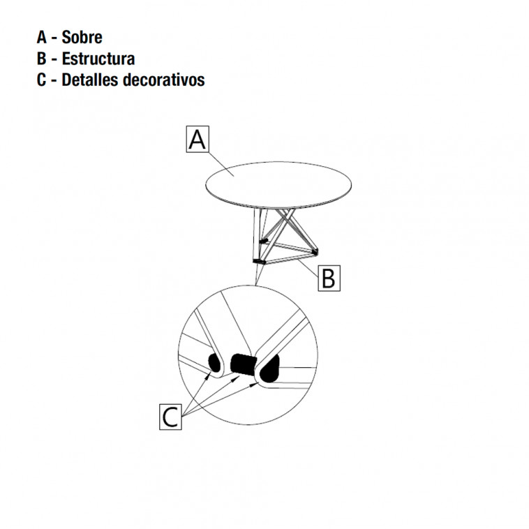 La mesa de diseño también incluye detalles decorativos en los conexiones de la estructura.