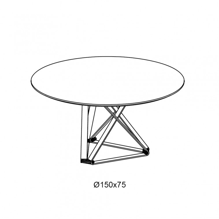 Mesa redonda con sobre en madera, cristal, o mármol. Dimensiones: Ø150x75h cm.