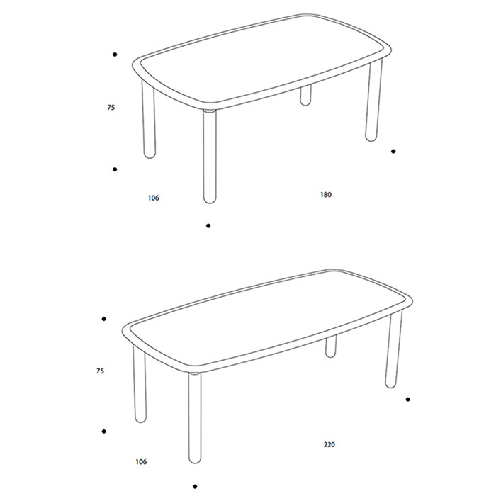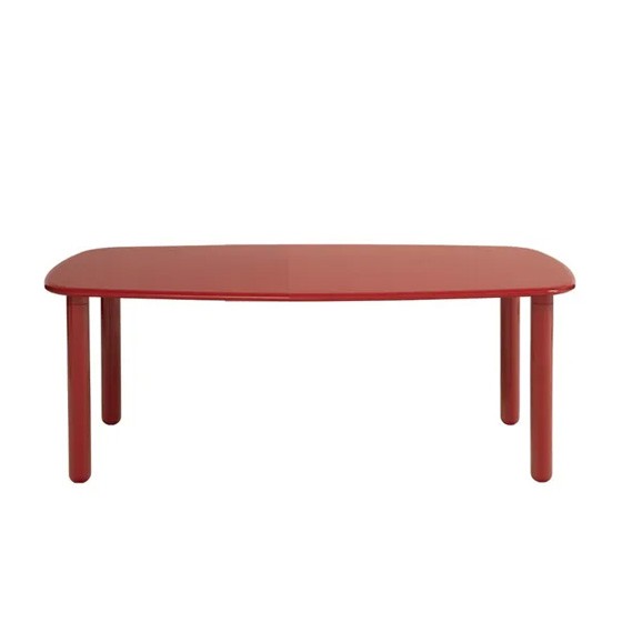 La colección Tottori de Driade se completa con una serie de mesas de comedor disponibles en dos tamaños diferentes. Su diseño se destaca por su sobre hecho de MDF con borde en forma de "jabón" y esquinas redondeadas, patas en madera maciza con la parte del suelo redondeada en media esfera, estructura de acero pintado del mismo color que el sobre. El acabado es una laca brillante propuesta en tres tonos.