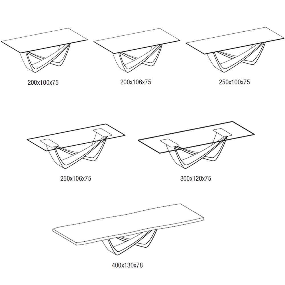 Mesa fija con sobre rectangular en diferentes acabados. Diseño: Andrea Lucatello.