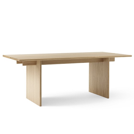 Mesa de comedor rectangular fabricada en madera de roble. Diseñada por Estudio Oeo.