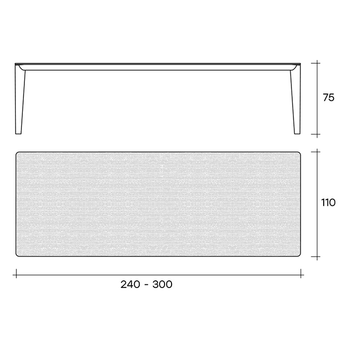 Mesa con tapa de cristal templado y fundido de 12 mm. Diseño de Studio Klass