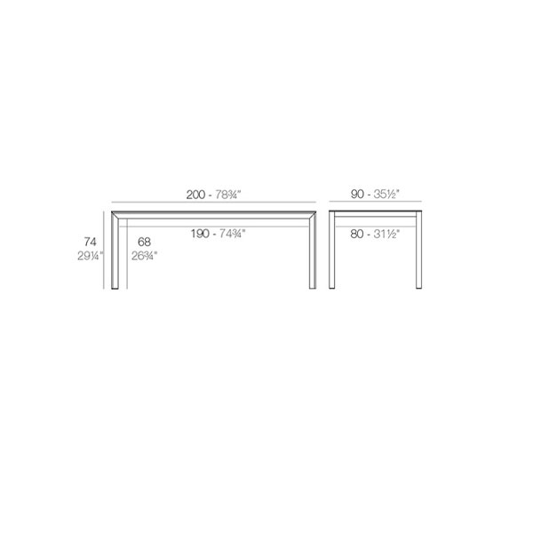 Mesa rectangular aluminio con sobre HPL. Dimensiones: 200x90x74h cm