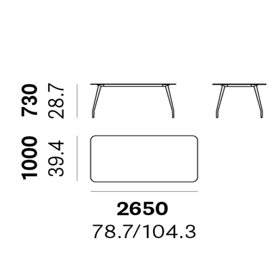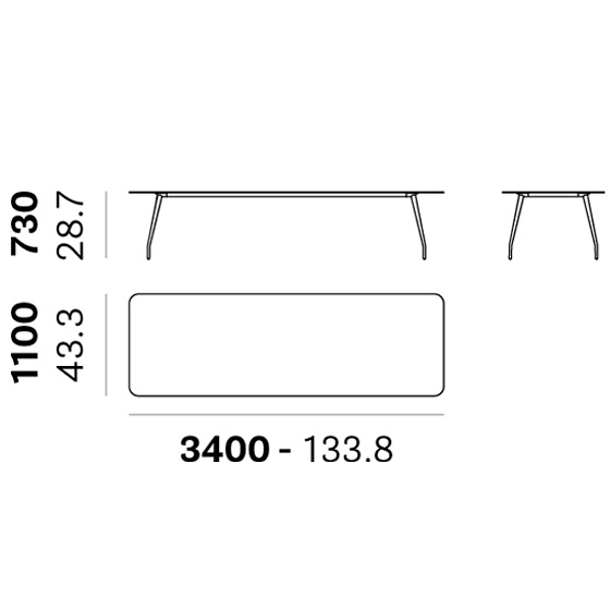 Una solidez estructural oculta por una limpieza de formas caracteriza esta mesa, que integra las patas con una estructura de soporte oculta bajo el sobre de mesa, para garantizar ligereza estética y máxima estabilidad, para soportar incluso sobres de mesa finos pero de gran tamaño.