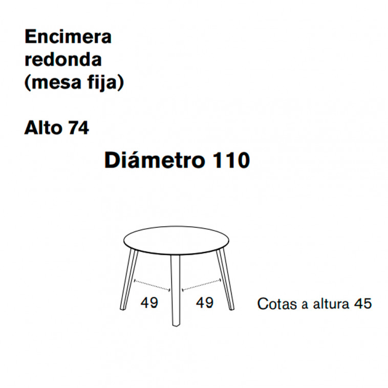 Mesa redonda en chapa natural con pies de madera. Dimensiones: Ø110x74h cm.