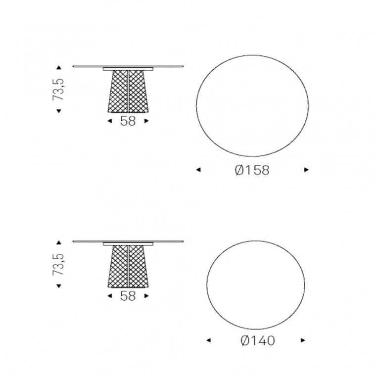 La mesa Atrium Keramik Round de Cattelan Italia cuentra con una original base central de cristal, compuesta por dos placas finamente trabajadas para crear un efecto tridimensional espejado. Este patrón refleja unos suaves destellos en el espacio circundante. El sobre redondo está hecho en cerámica Marmi, disponible en una amplia variedad de acabados.
