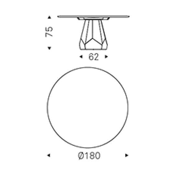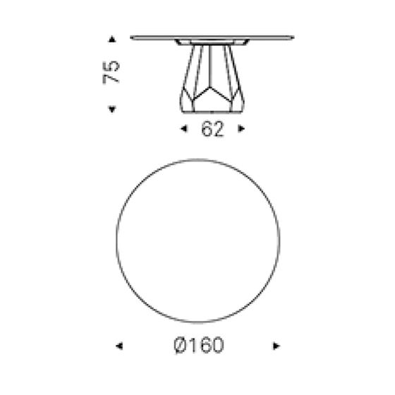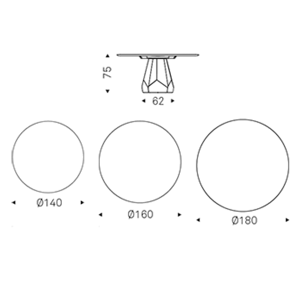 Cada cara refleja la luz de forma diferente, por lo que la base cambia de aspecto según el ángulo desde el que se observe. Esta variación de reflejos aporta dinamismo visual al conjunto. El sobre de madera aporta calidez y equilibrio al diseño, convirtiendo a esta mesa en una opción adecuada para comedores contemporáneos.