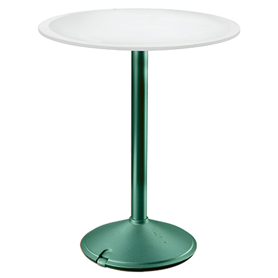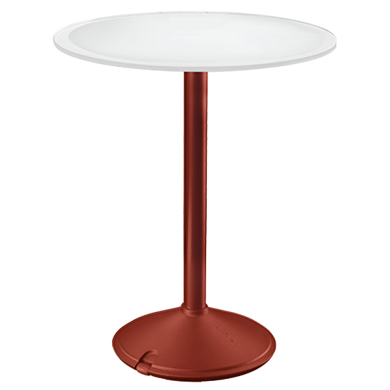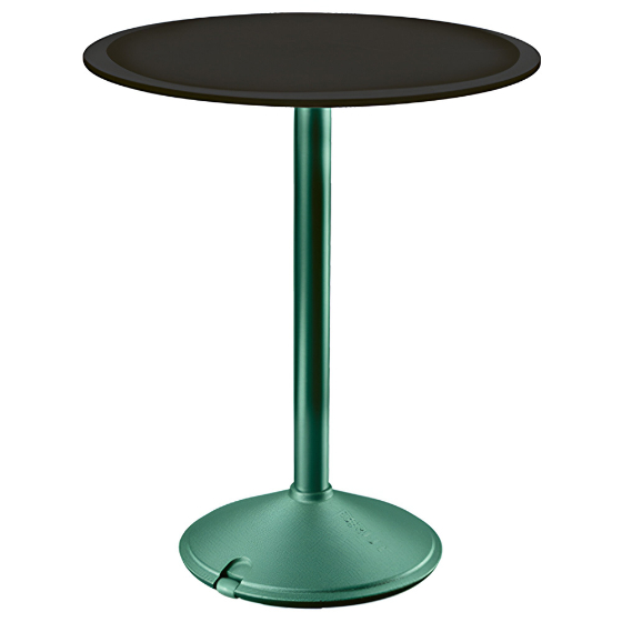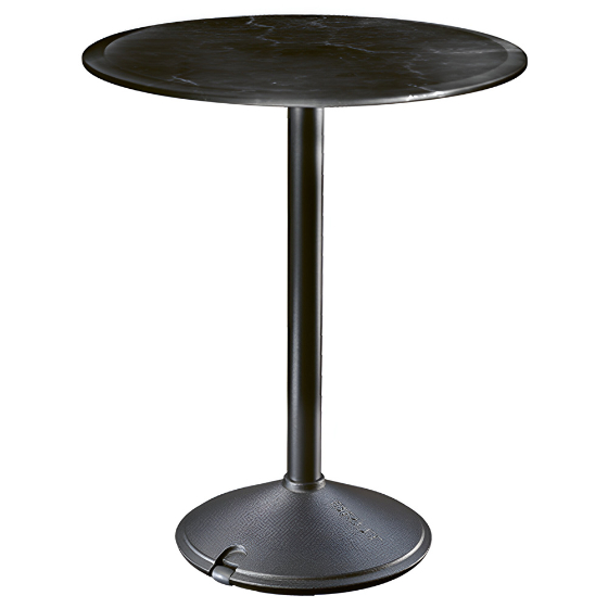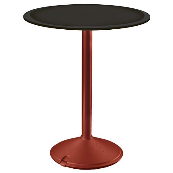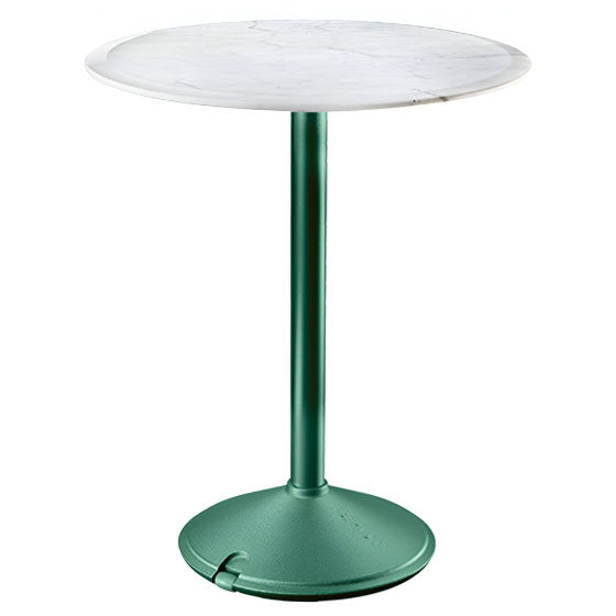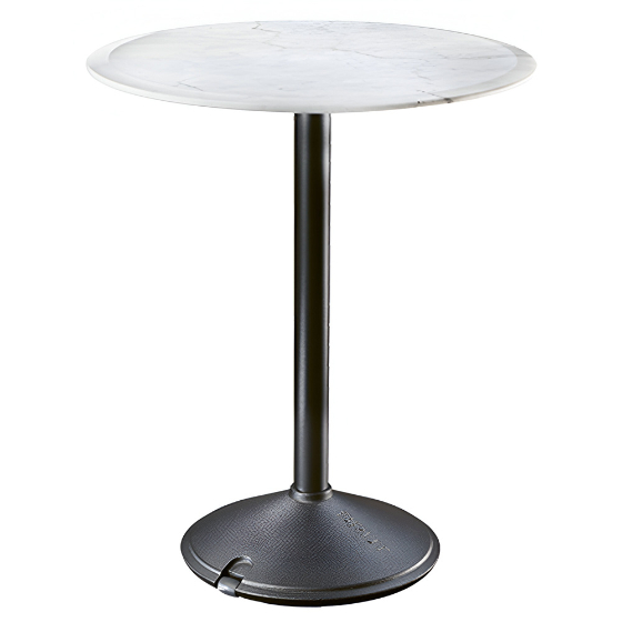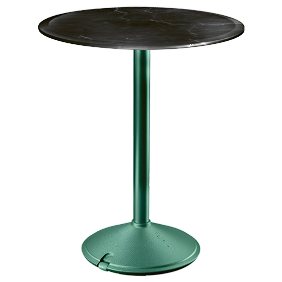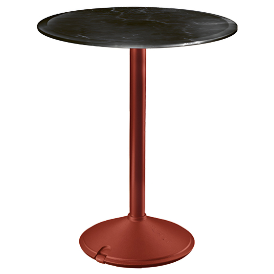 Mesa exterior redonda con sobre de HPL o mármol. Diseño Konstantin Grcic.