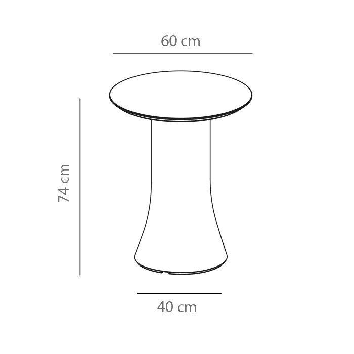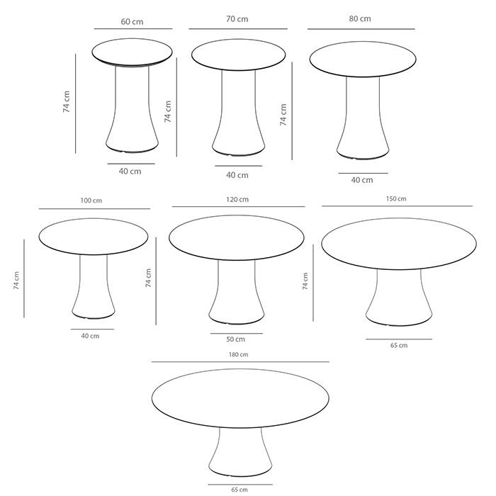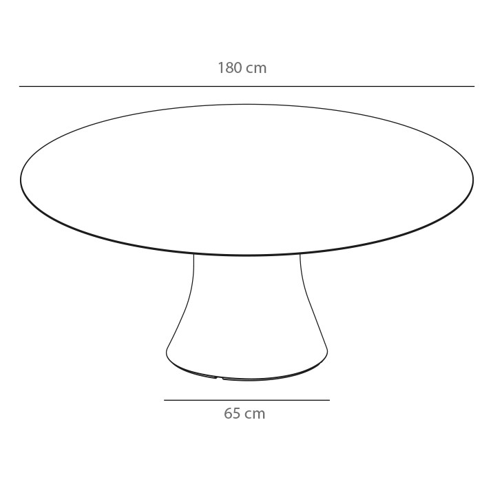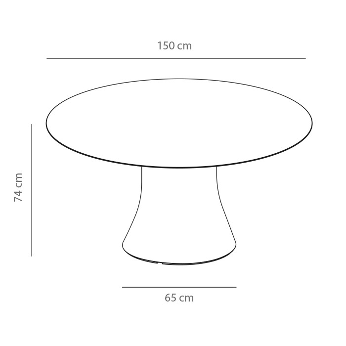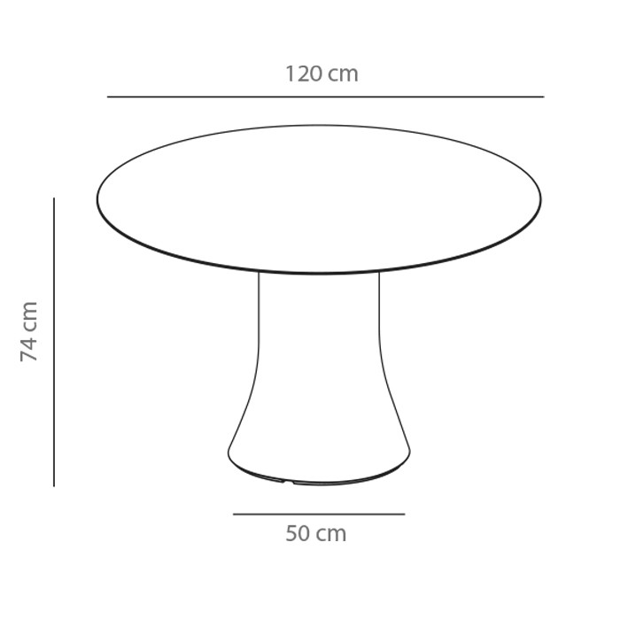 Mesa exterior redonda con columna central de polietileno. Diseño: Victor Carrasco.