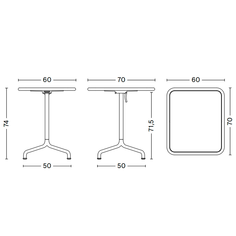 Mesa rectangular abatible de aluminio. Dimensiones: 60x70x74h cm.