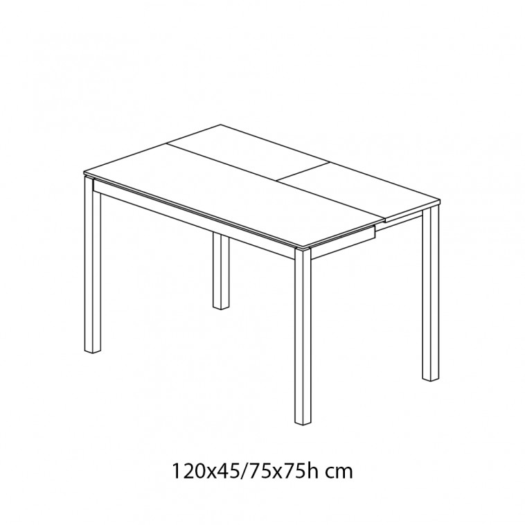 Mesa consola con estructura en acero y sobre extensible de cristal brillante o anti-arañazos.