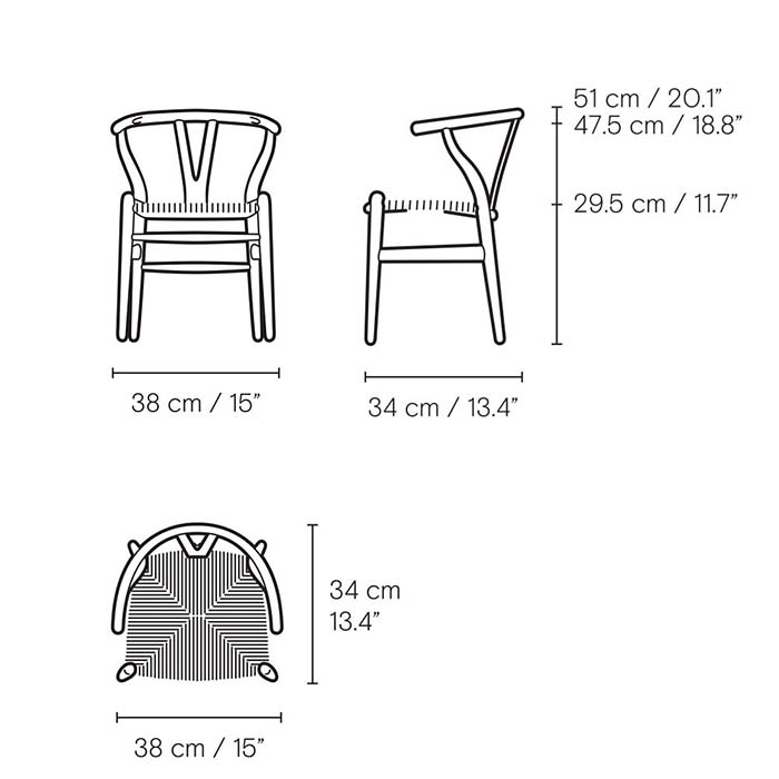 La silla consta de 14 componentes de roble macizo diseñados en colaboración con Wegner Design Studio y elaborados por hábiles artesanos de Carl Hansen & Søn. Con más de 100 pasos para terminar y ensamblar a mano, presenta el asiento de cordón de papel tejido a mano característico de Wegner en un patrón de sobre que un artesano experto necesita una hora para lograr.