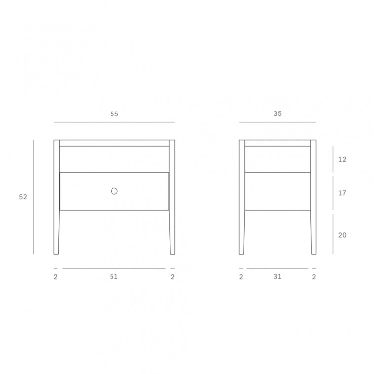 Cuenta con un cajón, un espacio abierto y unas elegantes patas ligeramente afiladas.