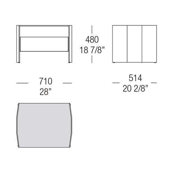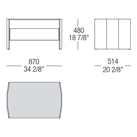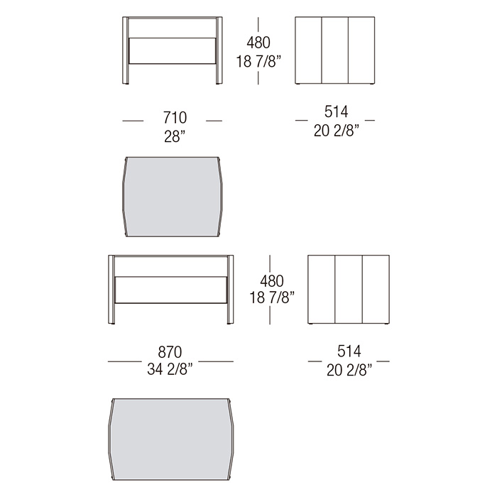 La estética, realzada por el fino tablero de madera disponible en numerosos acabados, no resta funcionalidad: la versión con cajón y compartimento se asemeja a la versión con frente fijo, perfecta para una utilización por las dos caras.