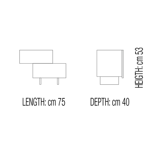 Mesita de noche doble con estructura de madera de roble y patas de cristal o metal. Diseño por Oliver B.