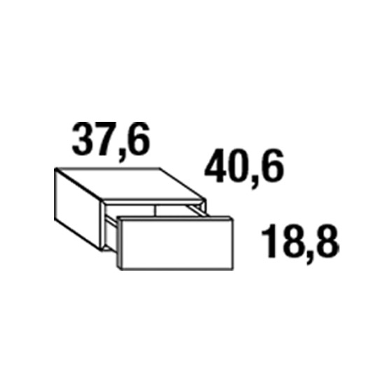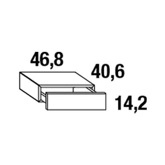 Mesita de noche suspendida con estructura acabado XGlass. Diseño por Daniele Lago