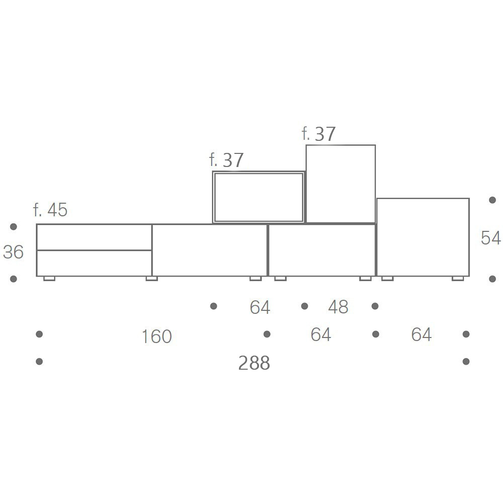 Moderno mueble para salón de diseño de Treku formado a partir de varios módulos unidos o apilados.