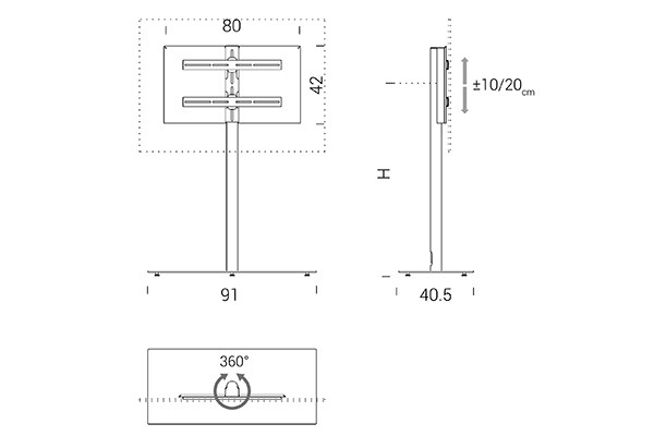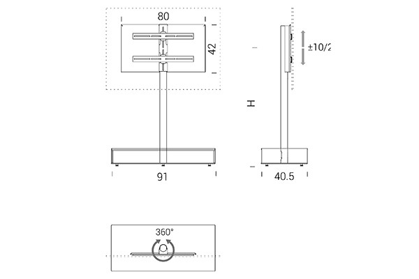 El mueble de televisión giratorio Spin 360 dispone de una cubierta de acero fácilmente extraíble para ocultar, por detrás de la pantalla, cables y tomas.