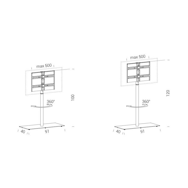 Mueble de televisión giratorio 360º con estructura en acero con diferentes acabados.