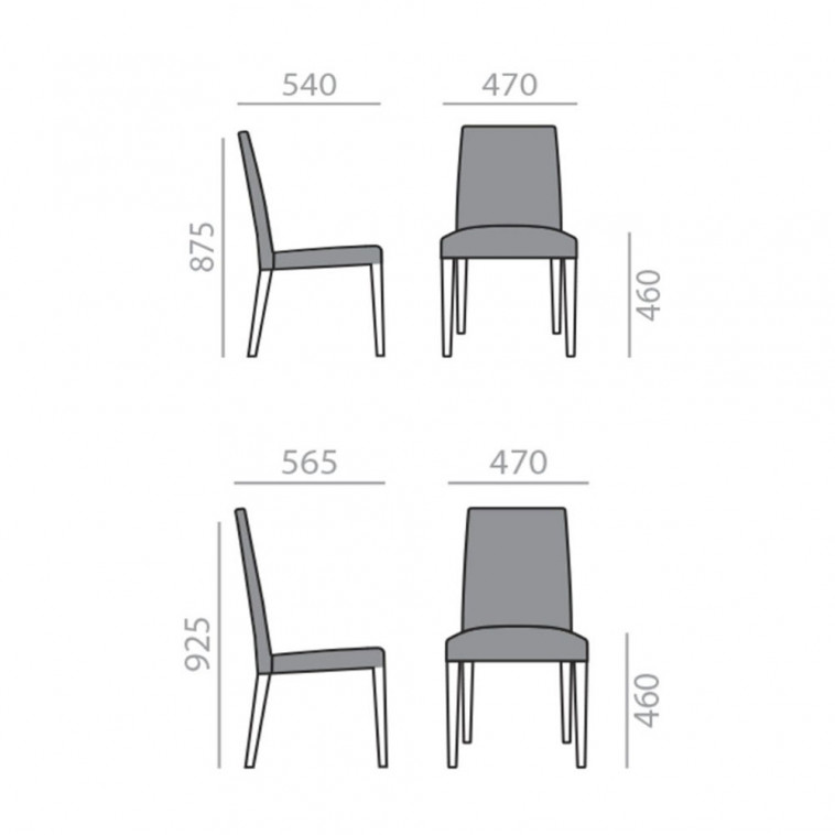 Silla tapizada estructura en madera maciza de haya y dos respaldos a elegir.