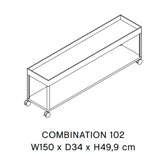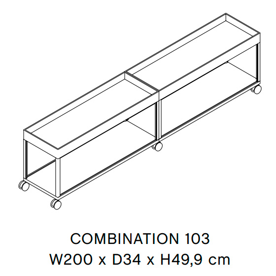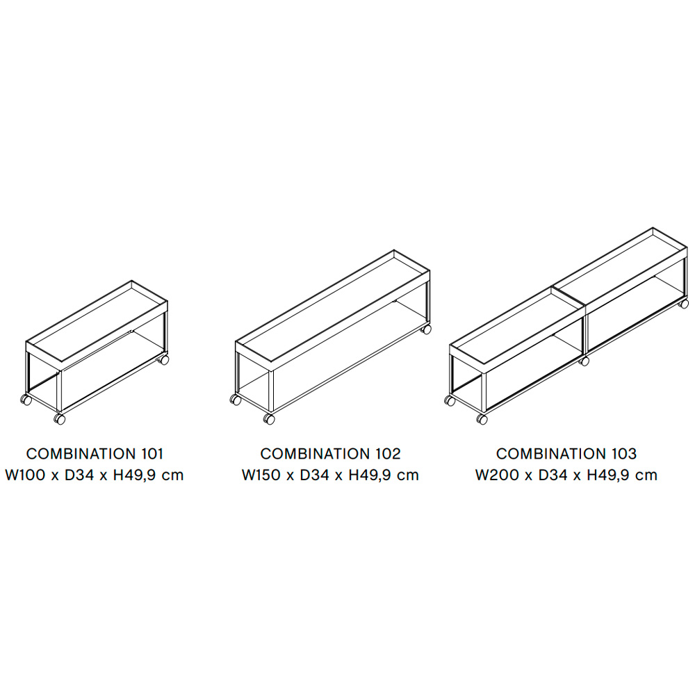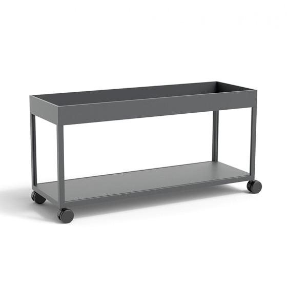 Mueble TV de acero con recubrimiento en polvo con ruedas. Diseño por Stefan Diez.