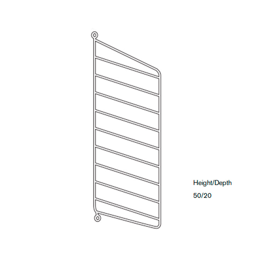 Soporte lateral de pared en acero recubierto de polvo para librería String. Dimensiones: 20x50h cm