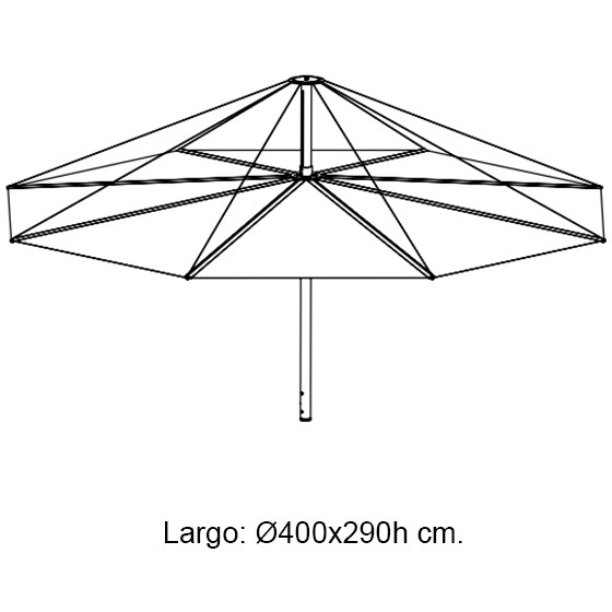 Parasol moderno, Abre o cierre fácilmente. Un parasol original con el sistema de asa y eje. Se ha diseñado una funda con varilla para facilitar su aplicación sin necesidad de subirse a la mesa. La cubierta debe colocarse en posición cerrada cuando no se utilice y especialmente cuando se prevean vientos fuertes.