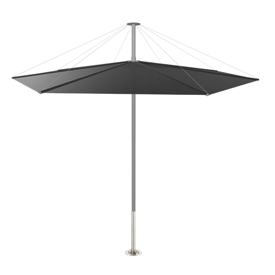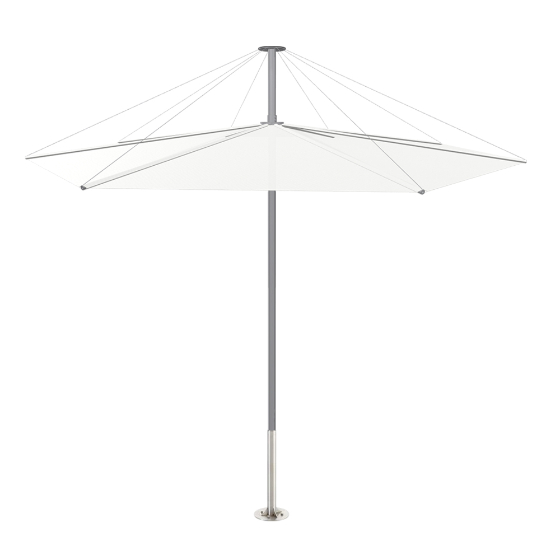 Parasol exterior de capota plana en tubo de acero. Diseño Dirk Wynants.