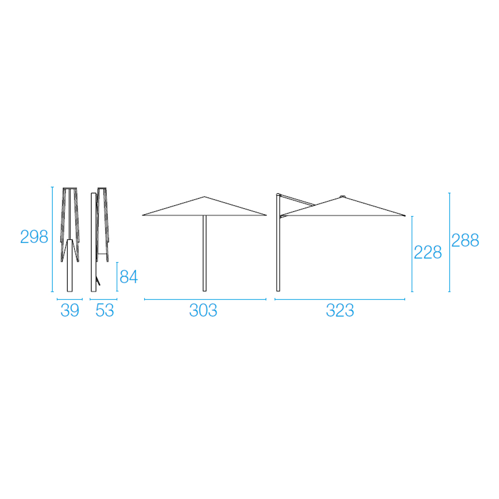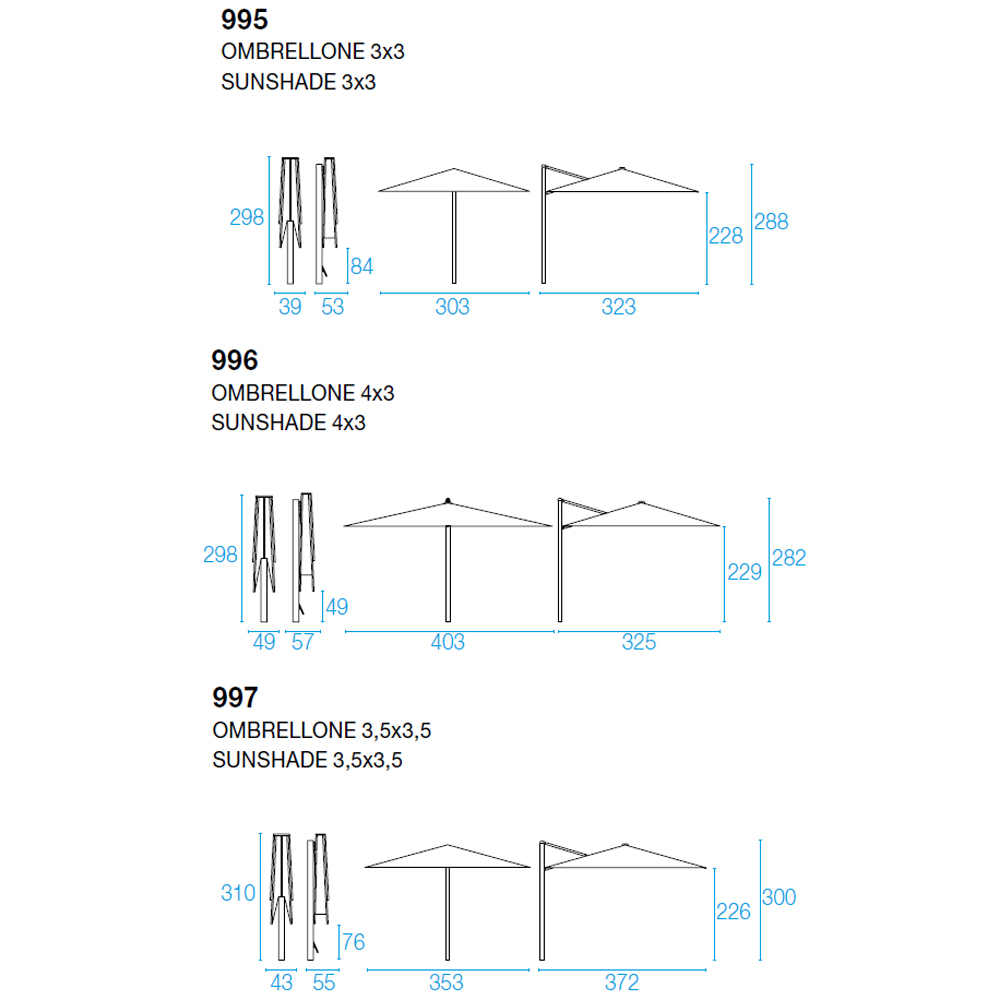 Parasol giratorio lateralmente de acero o aluminio. Diseño EMU D&S Lab.