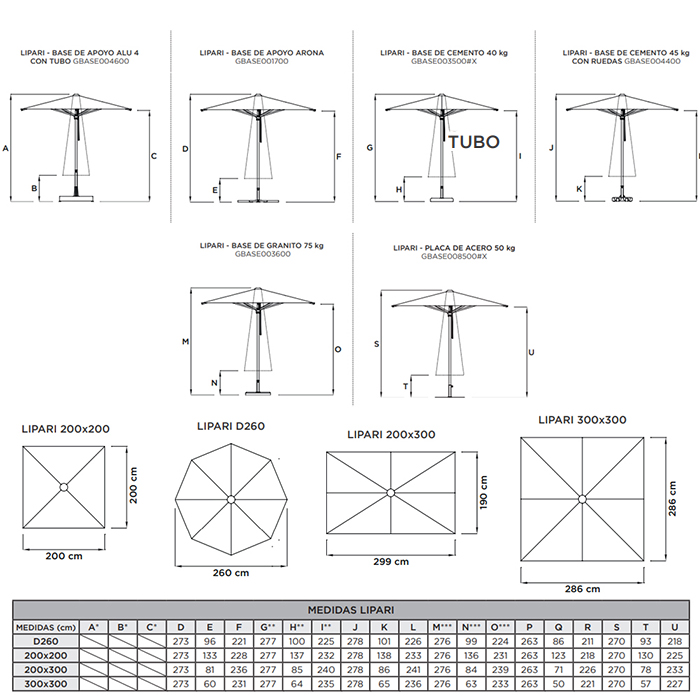 Sombrilla Lipari con estructura de madera tratada con pintura protectora.