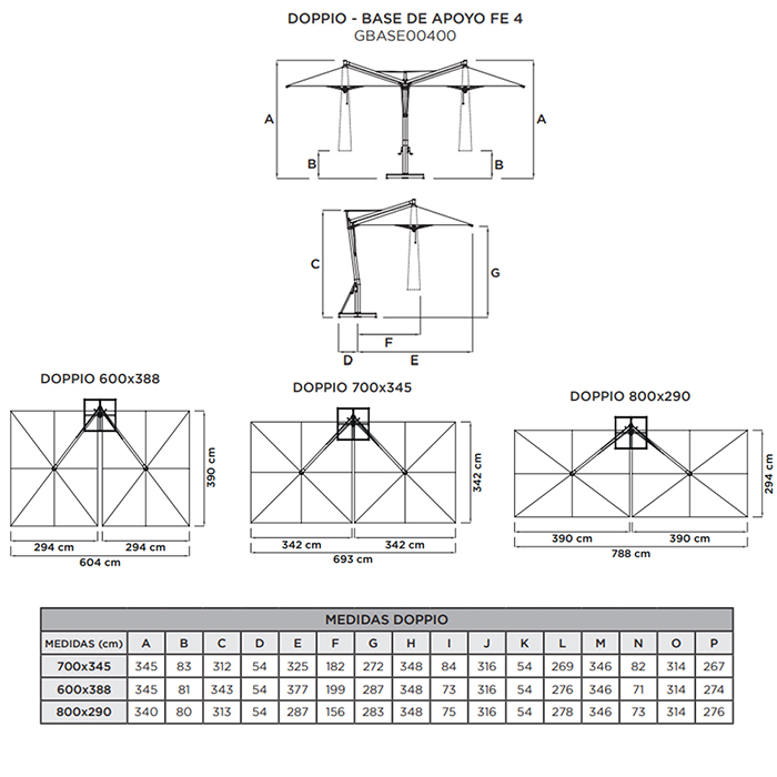La sombrilla DOPPIO se caracteriza por una estructura que ocupa el mínimo espacio gracias a su único mástil central que soporta dos sombrillas.