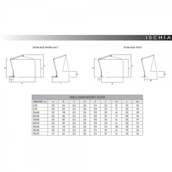 Se caracteriza por la posibilidad de inclinar la sombrilla lateralmente, una rotación de 360° alrededor de la base y una fácil apertura mediante manivela. Perfecta tanto para uso residencial como en proyectos.
