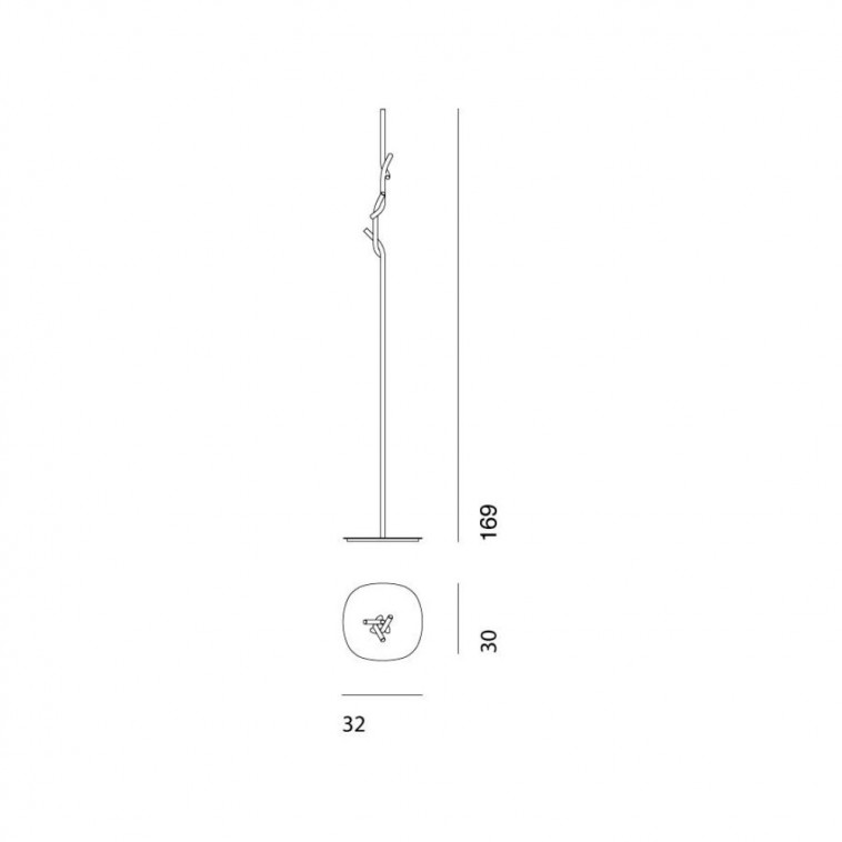 Perchero de pie con forma escultórica fabricada en acero. Dimensiones: 32x30x169h cm.