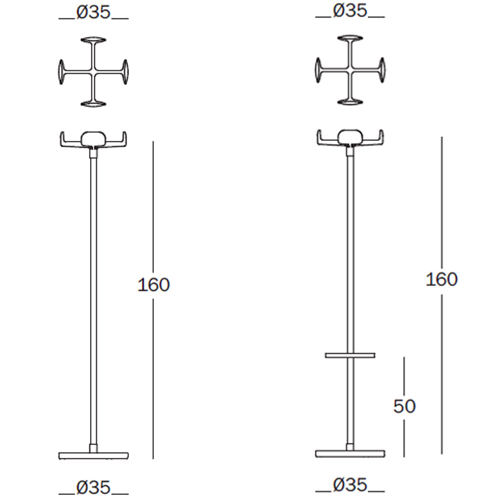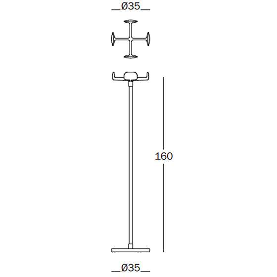 Perchero de suelo en aluminio fundido. Dimensiones: Ø35x160h cm.