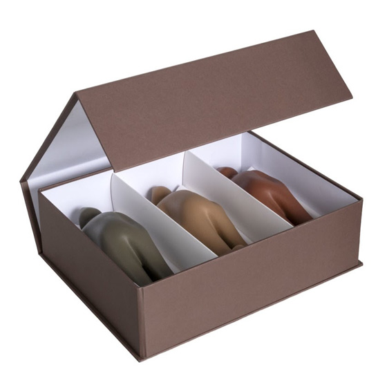 Giftboxes con 3 piezas de cerámica The Visitor mini 7x6,5x18,5h cm. Diseño por Guido Deleu.