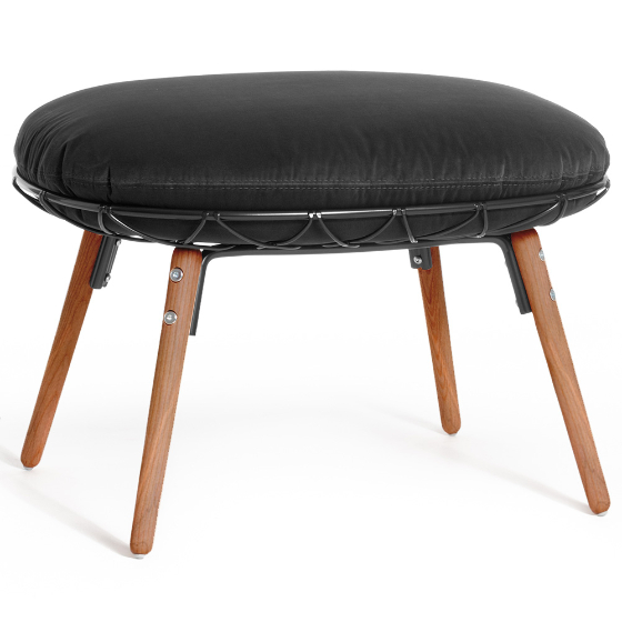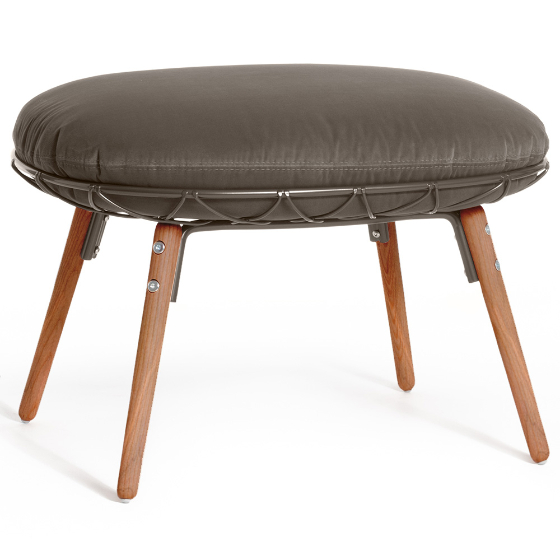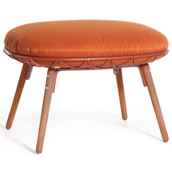 El diseño del Ottoman Piña Madera destaca por el entramado metálico que genera un discreto efecto capitoné, un detalle que aporta identidad a la colección y permite combinar esta pieza fácilmente con el sillón Piña o utilizarla como asiento independiente.