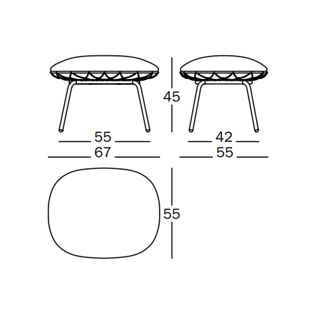 Diseñado con el característico entramado metálico de la colección Piña, este ottoman destaca por su estilo sencillo y moderno, ideal para complementar el sillón del mismo nombre o funcionar como pieza independiente en interiores o exteriores cubiertos.