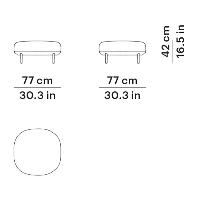 Pouf con estructura de aluminio pintado en polvo. Dimensiones: 77x77x42h cm.