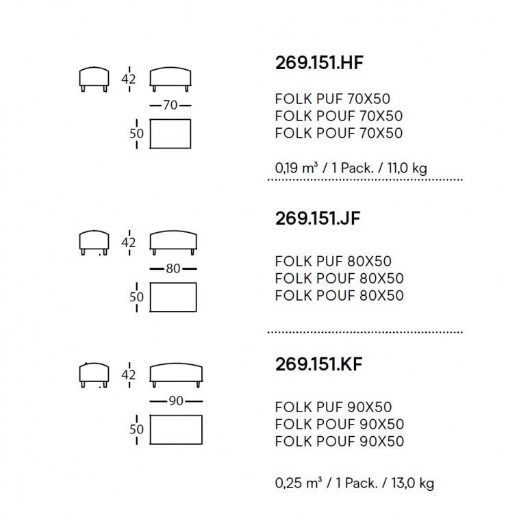 Pouf Folk para combinar con el sofá Folk de la colección, ambos elementos se destinan principalmente para salones amplios por la composición modular del sofá.