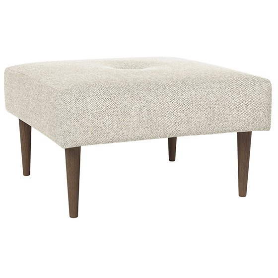 Puff con patas madera de roble oscuro en forma de Styletto. Dimensiones: 66x66x40h cm.