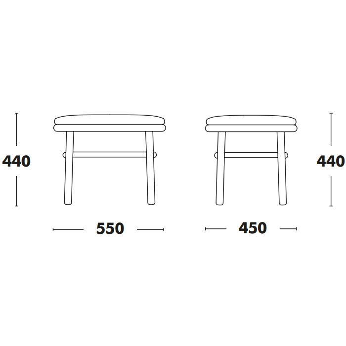 Pouf tapizado con estructura de madera haya tintada. Dimensiones: 55x45x44h cm.