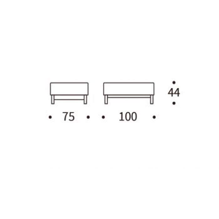 Puff tapizado con base de roble lacado. Dimensiones: 75x100x44h cm.