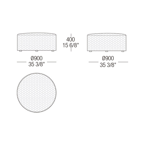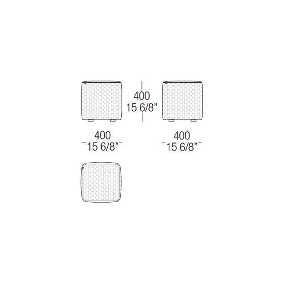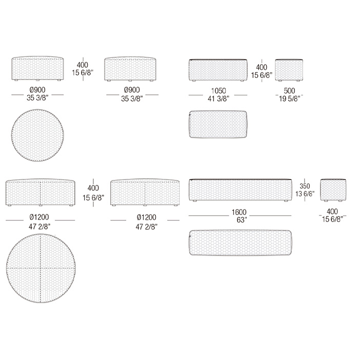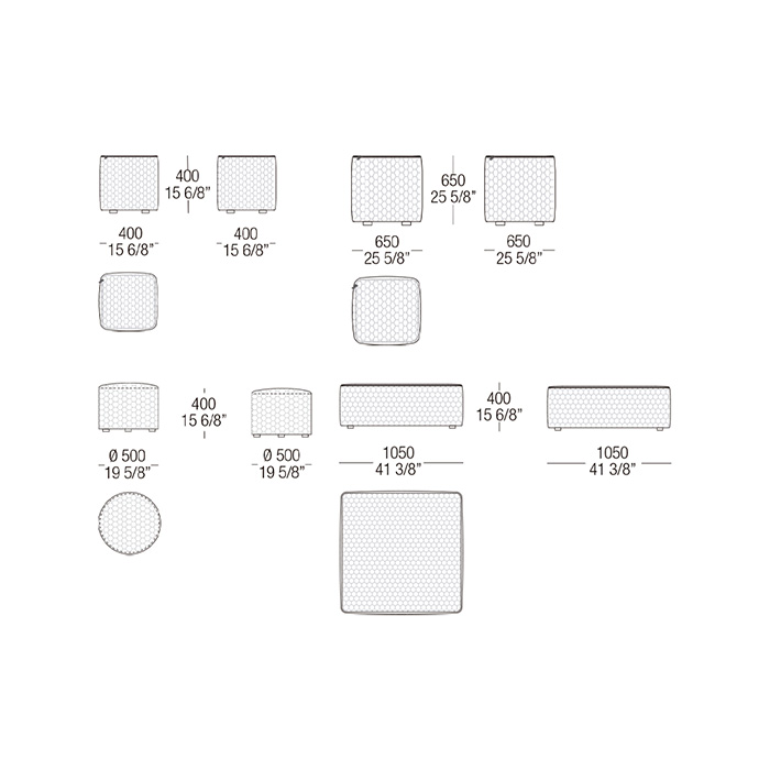 Pouf Stone de diferentes dimensiones con estructura interna revestida con tapizado de goma confort.