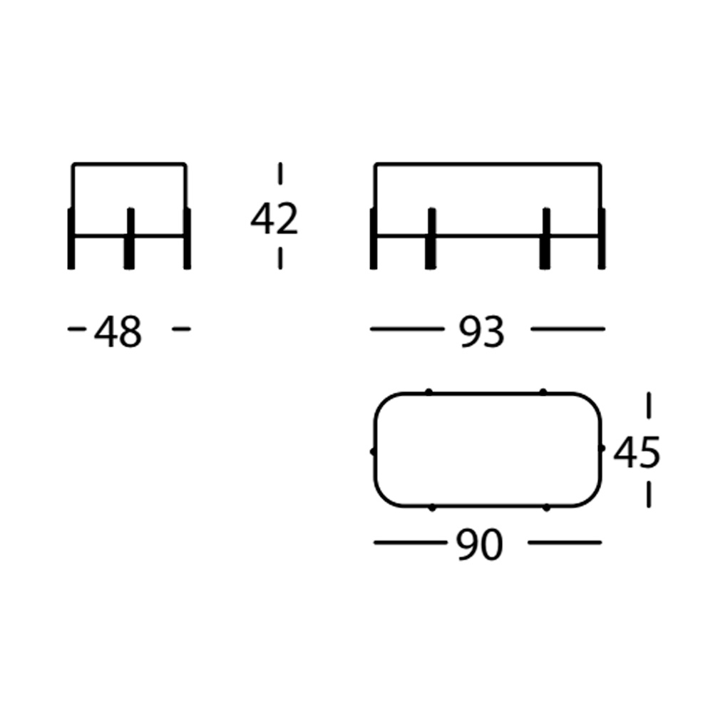 Pouf tapizado con patas grafito. Dimensiones: 90x45x42h cm.