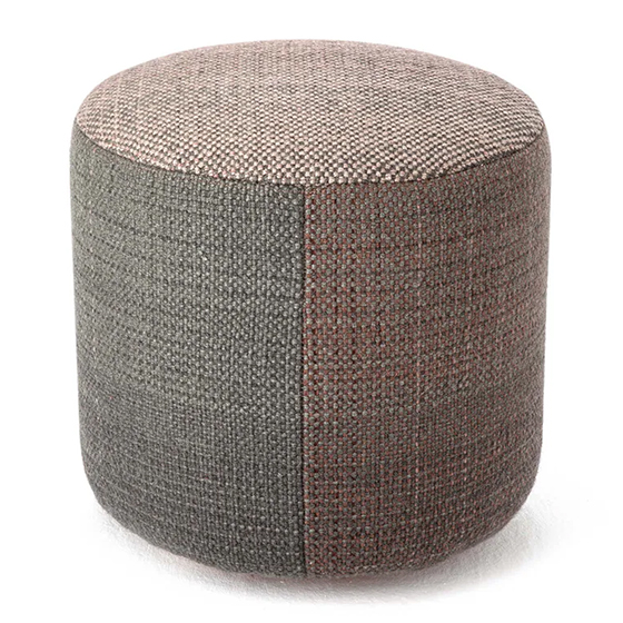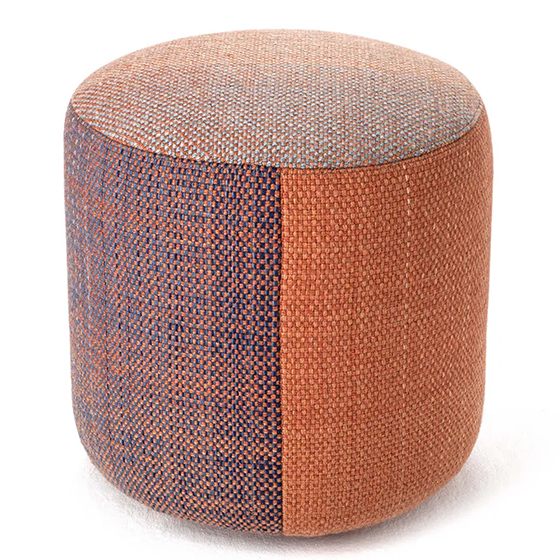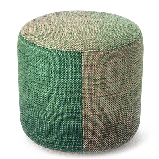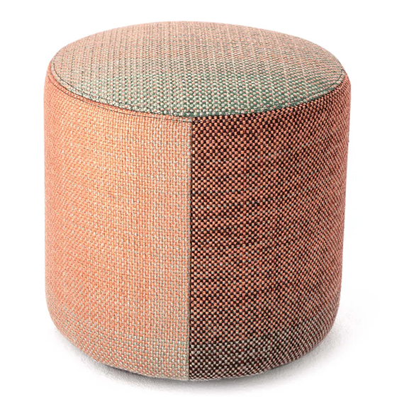 Este accesorio de forma cilíndrica es ligero, manejable y se presenta en ocho combinaciones cromáticas. Cada alfombra se complementa con dos poufs tapizados con los degradados principales.