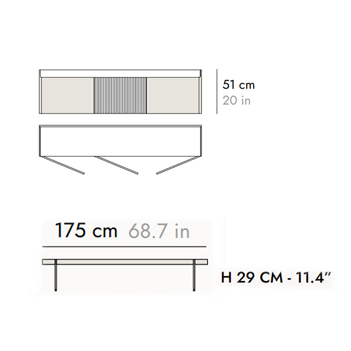 Diseño ganador del Premio Red Dot 2015, con un singular acabado de madera y apoyado sobre un zócalo de patas regulables.