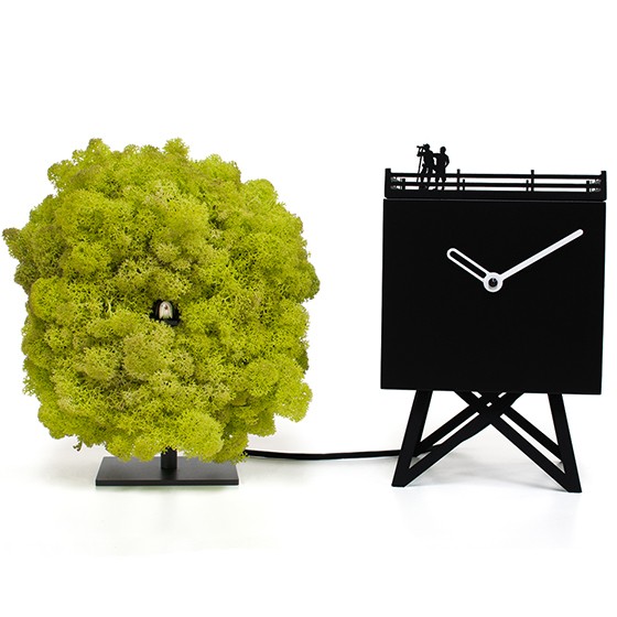 El diseño irónico y verde de Bird Watching nos lleva a observar cucos en el bosque. Es un cuco de mesa que decora escritorios, estanterías y muebles, en casa o en la oficina.