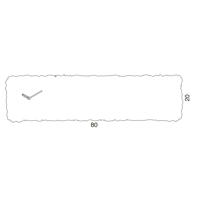 Reloj pared rectangular fabricado en acero y líquenes. Dimensiones: 80x20h cm.